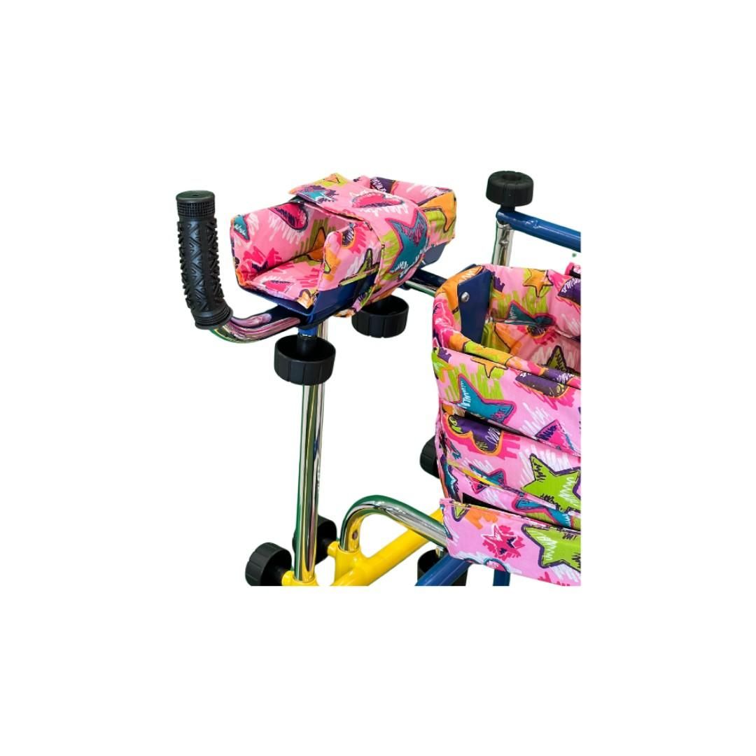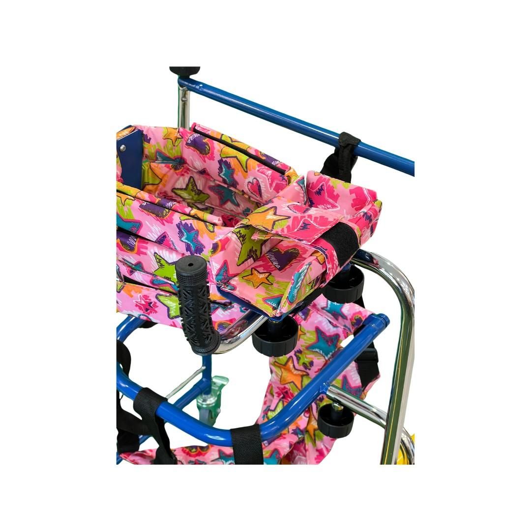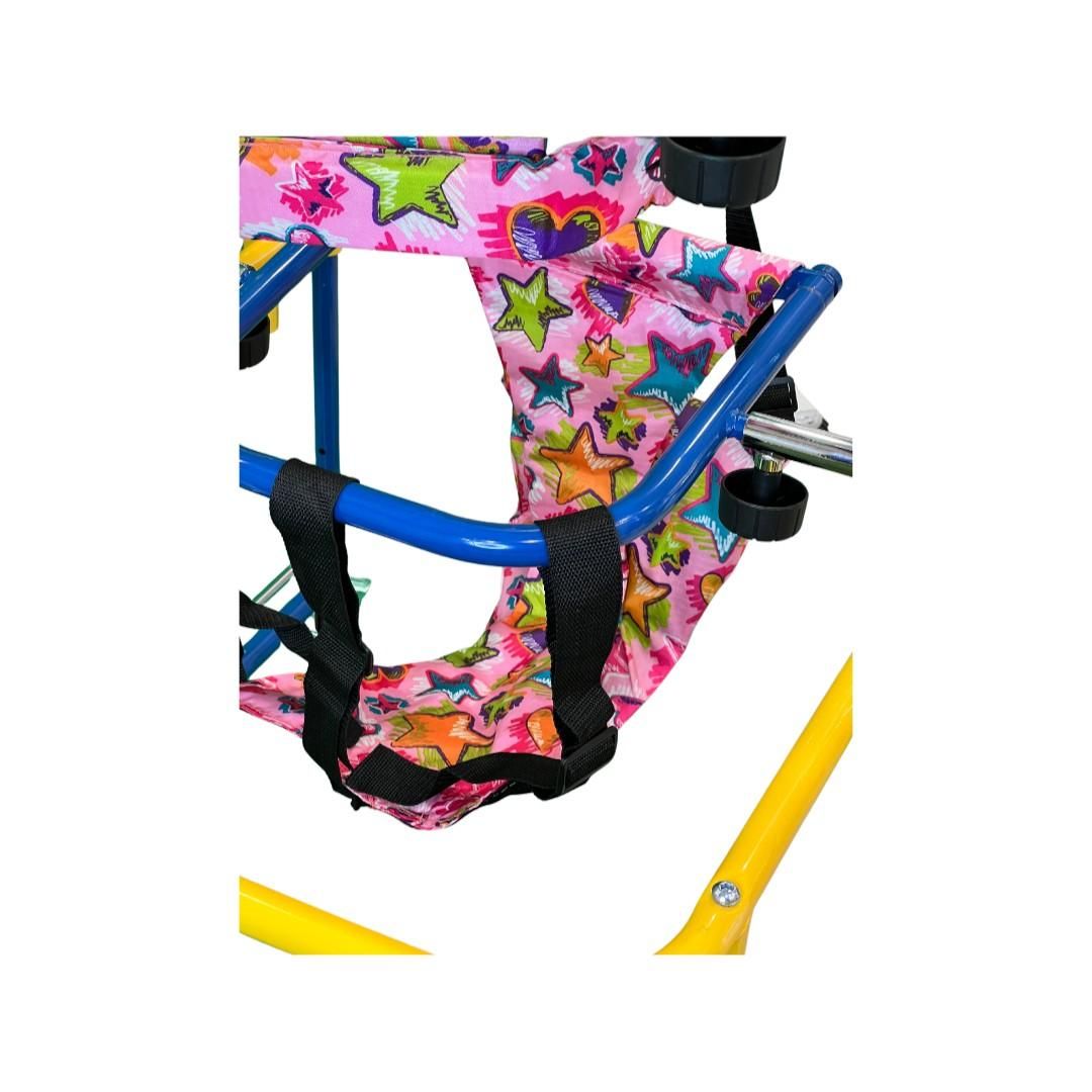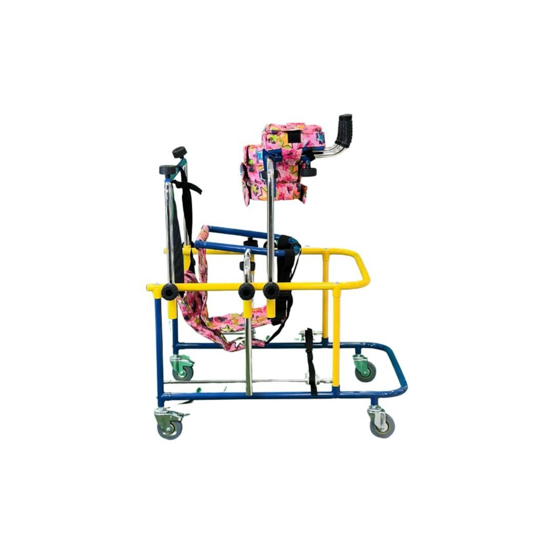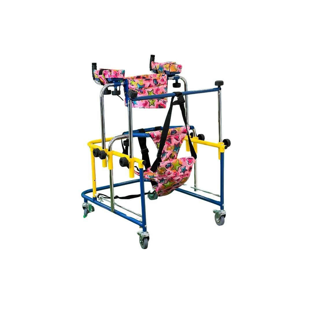 Детскиот вертикализатор е специјално дизајниран за деца кои имаат проблем со движењето. Опремен со удобни и сигурносни каиши за фиксирање на детето. Има повеќе опции на прилагодување на висината.