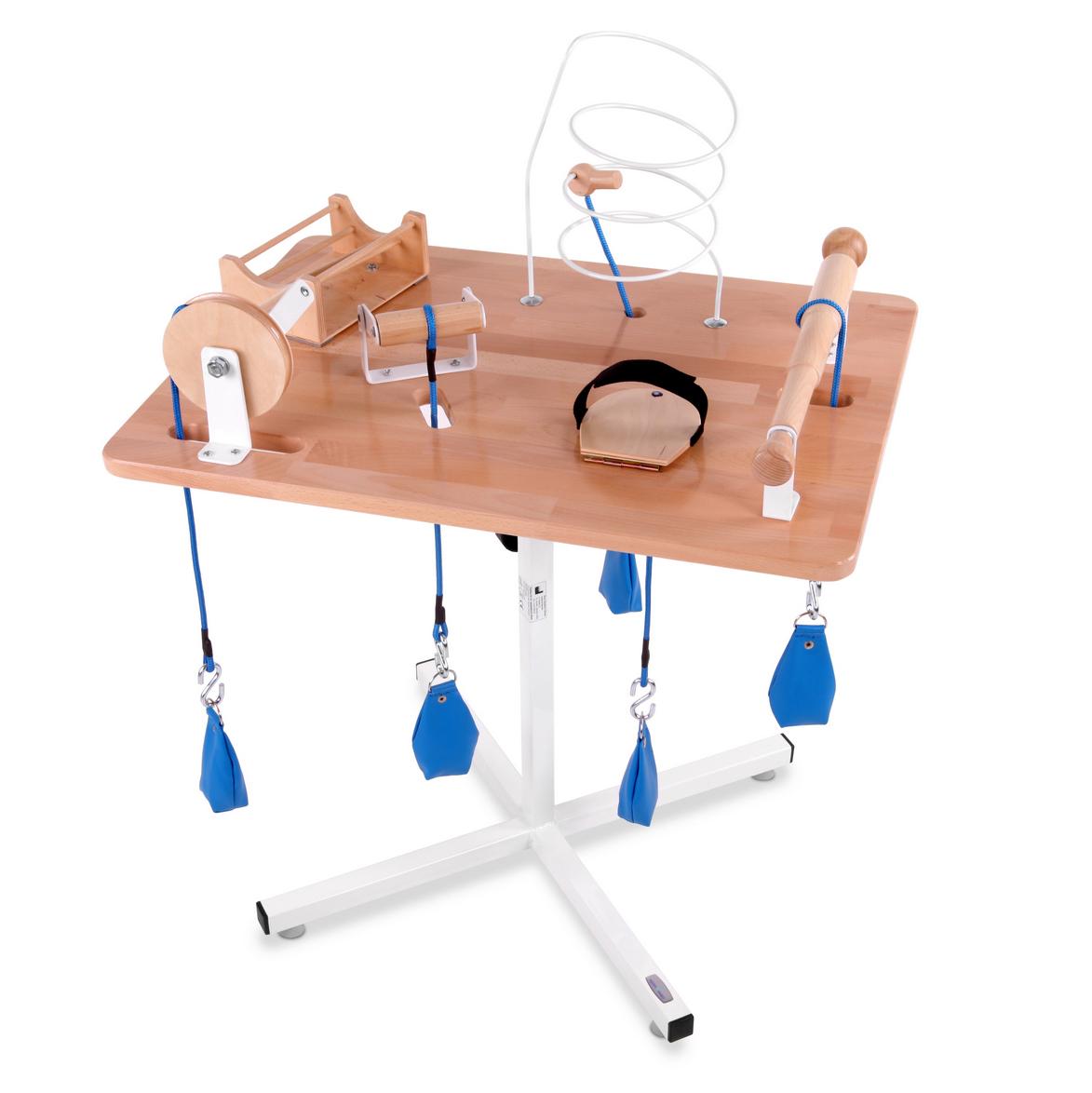 Kjo tabelë është projektuar për ushtrime me rezistencë manuale, duke ofruar kushte ideale për ushtrime aktive dhe rezistente duke përdorur sistemet e rrotullës dhe peshës. Është i pajisur me një komplet të plotë aksesorësh të ndryshëm, gjë që e bën atë veçanërisht të dobishëm në procesin terapeutik për përmirësimin e sëmundjeve ortopedike, reumatologjike dhe neurologjike të dorës. PRODUKTI ESHTE I DISPONUESHEM ME POROSI TE VEÇANTA