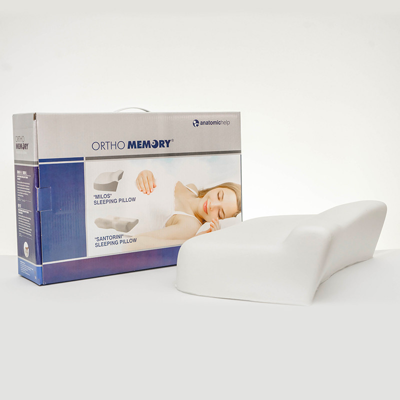 Анатомската перница Милос е направена од мемори пена со голема густина која ја поддржува соодветната позиција на ‘рбетниот столб. Погодна за лица со болки во вратот, дегенеративни промени на ‘рбетот како и превенција од нив.