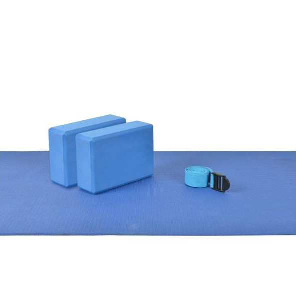 Мамбо јога сетот има сé што ви е потребно за секојдневно вежбање јога. Овој сет се состои од подлога за јога од PVC материјал, два блока изработени од пена и безбедносна лента за јога.