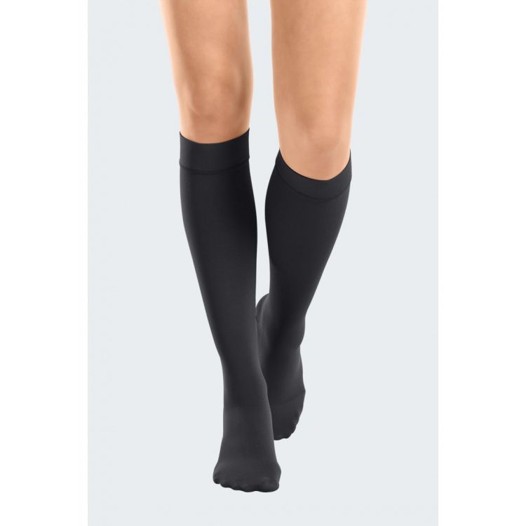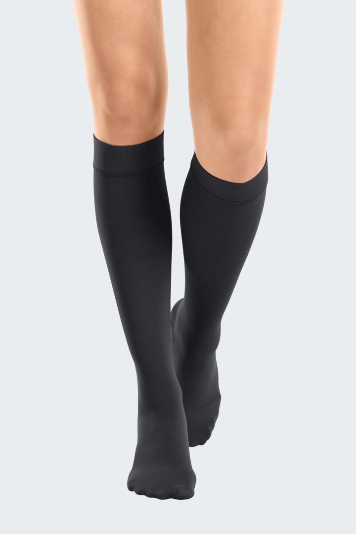 Дуомед Смут компресивни чорапи се идеална комбинација на ефикасност и стилска елеганција. Мекиот материјал е пријатен и нежен за нозете и обезбедува одличен комфор. Со нежно сјајниот материјал во карамел и црна боја, компресивните чорапи Дуомед Смут на секоја облека и даваат елегантен изглед. И на работа и во слободно време Дуомед смут е верен придружник-во исто време обезбедува ефикасна терапија и изгледа добро.