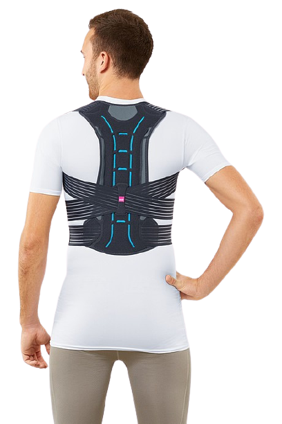 Ортоза наменета за корекција на држењето на телото. Изработена е од еластичен материјал кој е пријатен и не се приметува под облека. Во задниот дел има алуминиумски ленти кои го корегираат држењето и овозможуваат правилна положба на `рбетот. Ремените за позиционирање се фиксираат со велкро лепенки, што овозможува лесно и прецизно прилагодување на корсетот според потребите на пациентот.
