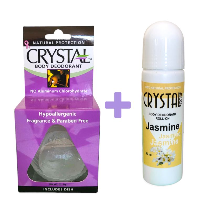Сет од женски ролон кој во составот содржи кристал на база на минерал за нега на кожа и мирис на јасмин и кристален женски стик на база на минерал за нега на кожа. Кристалот не содржи алуминиум и не ги затвара порите на кожата.
