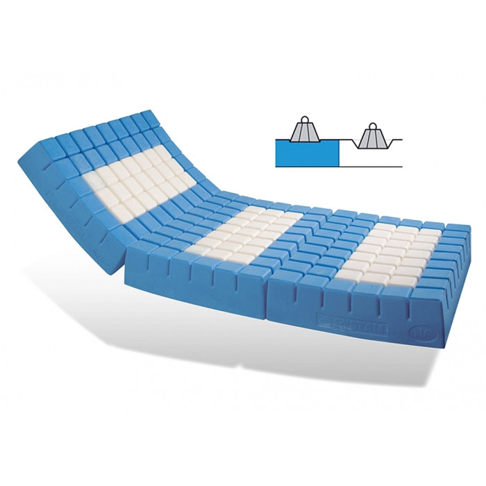 Aнтидекубиталeн душек изработен од три дела независни еден од друг. Овие делови се составени од база на чија површина има 54 блока кои се поместуваат независно еден од друг. Блоковите од централниот дел се таканаречени low weight-bearing со поголема мекост, наменети за додатно намалување на притисокот на предилекционите места (тил, крст, пета). Страничните блокови имаат функција на стабилизатори на позицијата на пациентот и не дозволуваат негово испаѓање од душекот. Polymaille прекривка е 100% хипоалергиска, импермеабилна за течности, пермеабилна за испарувања при евапорација и е третирана антибактериски, антипаразитарно и антифунгално (SANITIZED treated).